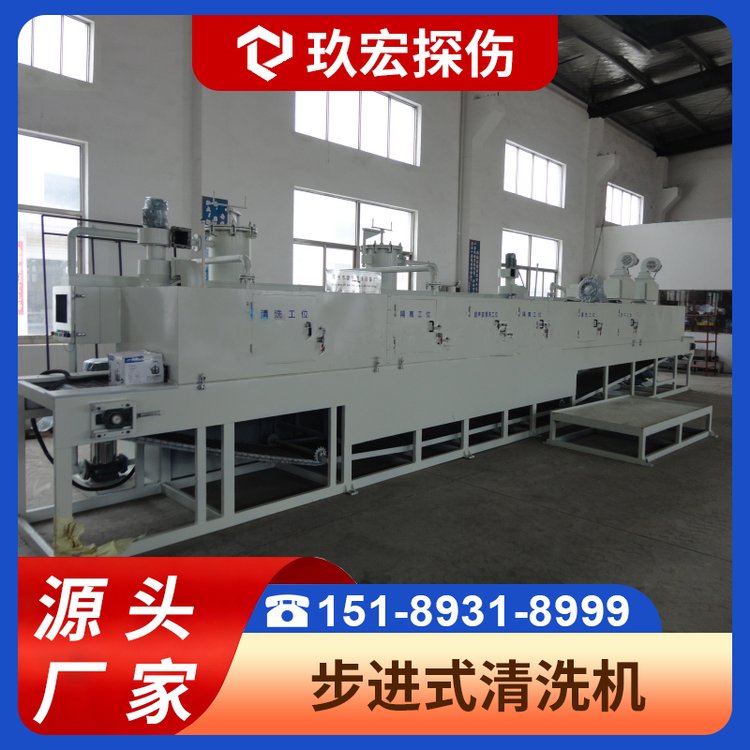 步进式喷淋清洗机:高压 / 中压喷淋,适合去屑、除油、一般洁净度工件(如机加工件、铸件)。